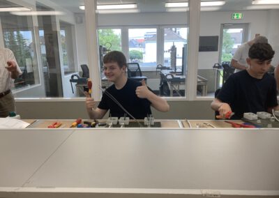 Einmal im Jahr, kurz vor den Sommerferien, steht unsere gesamte Schule ganz im Zeichen von Mathematik, Informatik, Naturwissenschaften und Technik. Am schulweiten MINT-Tag dreht sich alles um Forschung, Experimente, außerschulische Lernorte und Berufsorientierung und der Unterricht verlässt die gewohnten Bahnen: Kooperationspartner kommen in die Schule und bieten Veranstaltungen zu naturwissenschaftlich-technischen Themen an, während andere Klassen außerschulische MINT-Orte besuchen – etwa Erlebnisbauernhöfe, Planetarien oder Museen. Darüber hinaus nehmen Schüler:innen an Experimentierworkshops (z.B. im Maxipark Hamm) teil oder gewinnen bei Berufsorientierungsmaßnahmen erste Einblicke in MINT-Berufe (z. B. Stadtwerke-Tour, Berufsorientierungstraining Klasse 7). Für Klassen, die in der Schule bleiben, stehen zudem speziell entwickelte Experimente zur Verfügung, die von Kolleginnen und Kollegen eigens für diesen Tag konzipiert wurden. So erlebt die gesamte Schule MINT nicht als Fach, sondern als Haltung – neugierig, praktisch und lebensnah.​​​​​​​​​​​​​​​​